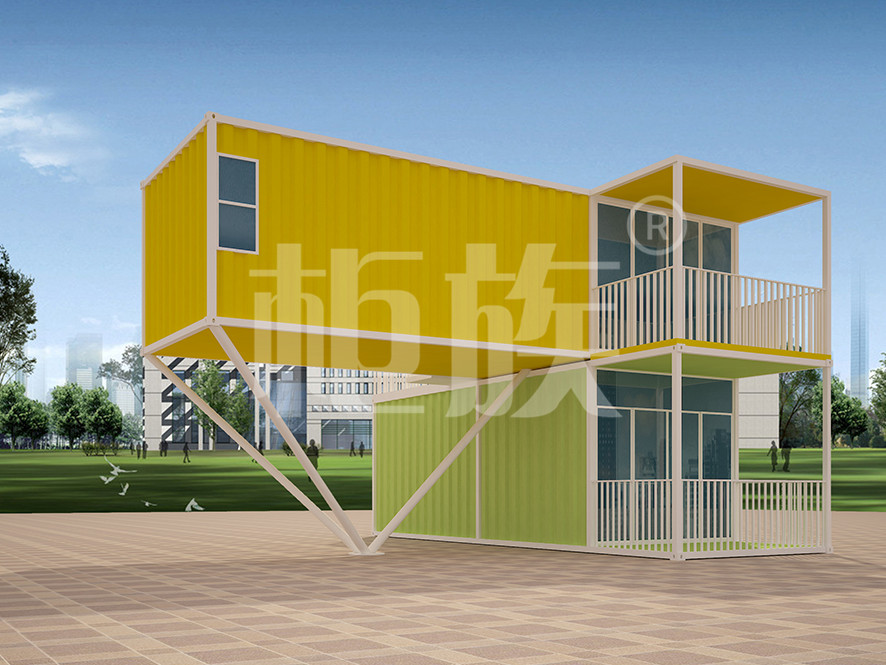 上下兩層集裝箱交錯排列,既能拓展公寓使用面積,又能個性化設(shè)計公寓外觀。整體色彩清新明亮,充滿現(xiàn)代化設(shè)計風(fēng)格。
